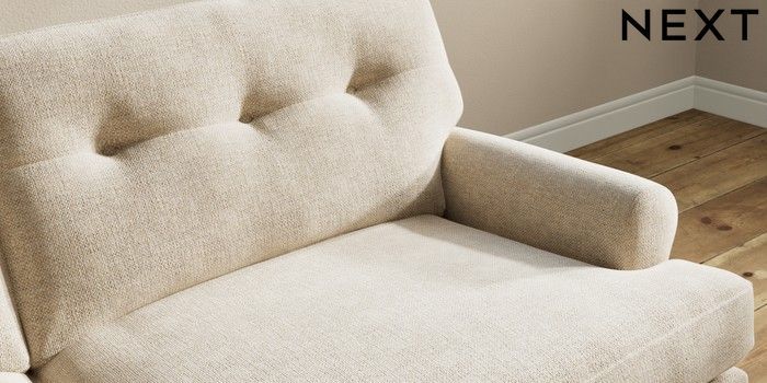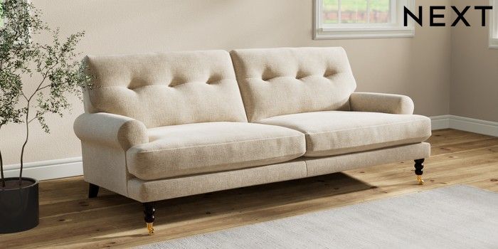 7.2.10 Erin Buttoned Back Deep Relaxed Sit 3 Seater Sofa Chunky Weave Cream High Classic Turned Brass Castor - Dark | Made Click here to use our website with more accessibility support, for example screen readers