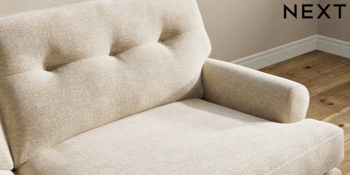 7.2.10 Erin Buttoned Back Deep Relaxed Sit 3 Seater Sofa Chunky Weave Cream High Classic Turned Brass Castor - Light | Made Click here to use our website with more accessibility support, for example screen readers
