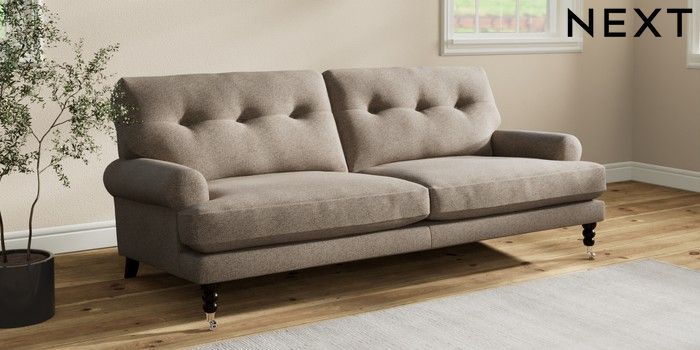 7.2.10 Erin Buttoned Back Deep Relaxed Sit 3 Seater Sofa Chunky Weave Dark Natural High Classic Turned Chrome Castor - Dark | Made Click here to use our website with more accessibility support, for example screen readers