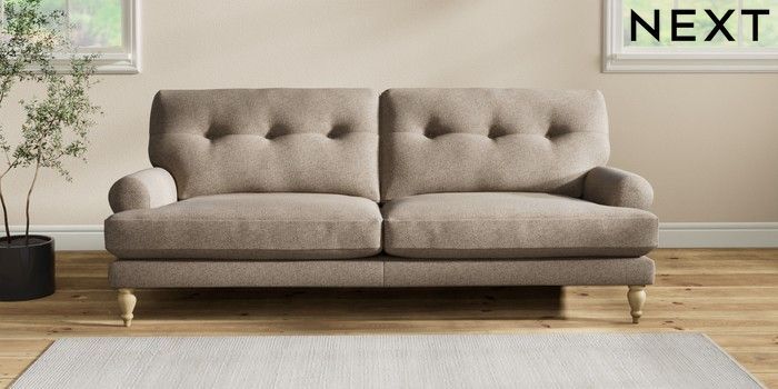7.2.10 Erin Buttoned Back Deep Relaxed Sit 3 Seater Sofa Chunky Weave Dark Natural High Classic Turned - Light | Made Click here to use our website with more accessibility support, for example screen readers