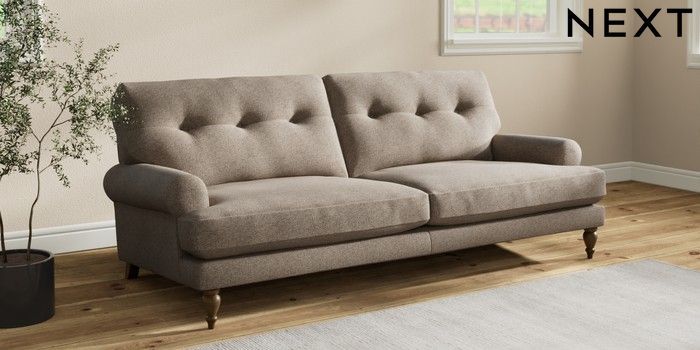 7.2.10 Erin Buttoned Back Deep Relaxed Sit 3 Seater Sofa Chunky Weave Dark Natural High Classic Turned - Mid | Made Click here to use our website with more accessibility support, for example screen readers