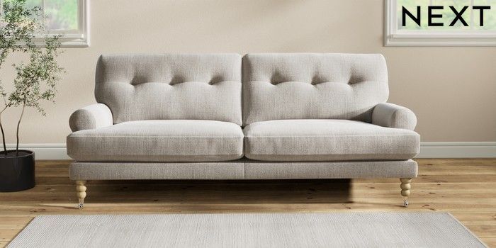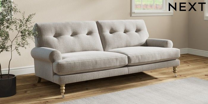 7.2.10 Erin Buttoned Back Deep Relaxed Sit 3 Seater Sofa Chunky Weave Dove Grey High Classic Turned Chrome Castor - Light | Made Click here to use our website with more accessibility support, for example screen readers