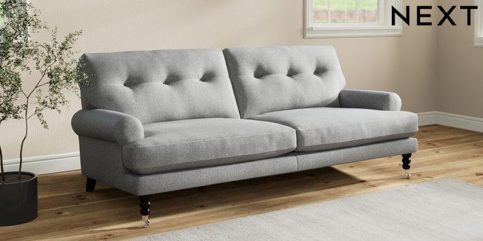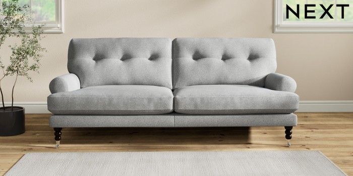 7.2.10 Erin Buttoned Back Deep Relaxed Sit 3 Seater Sofa Chunky Weave Mid Grey High Classic Turned Chrome Castor - Dark | Made Click here to use our website with more accessibility support, for example screen readers