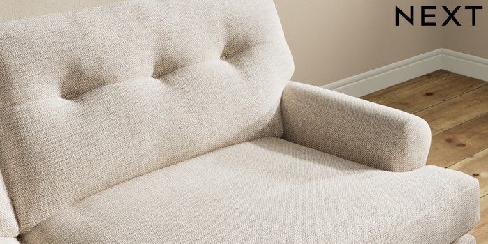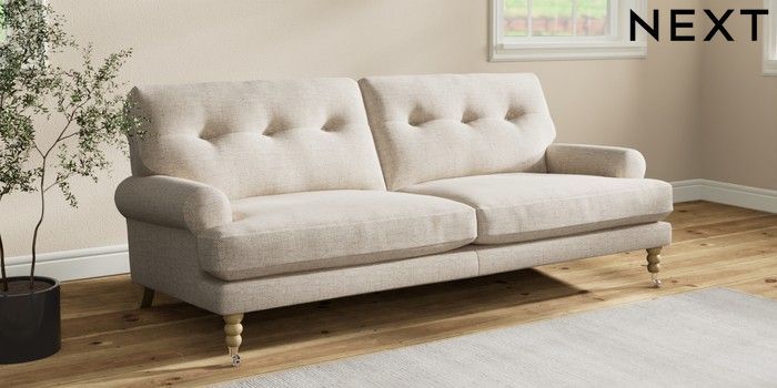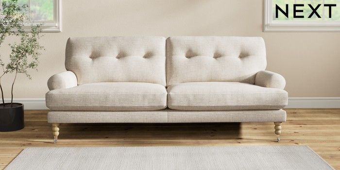 7.2.10 Erin Buttoned Back Deep Relaxed Sit 3 Seater Sofa Chunky Weave Mid Natural High Classic Turned Chrome Castor - Light | Made Click here to use our website with more accessibility support, for example screen readers