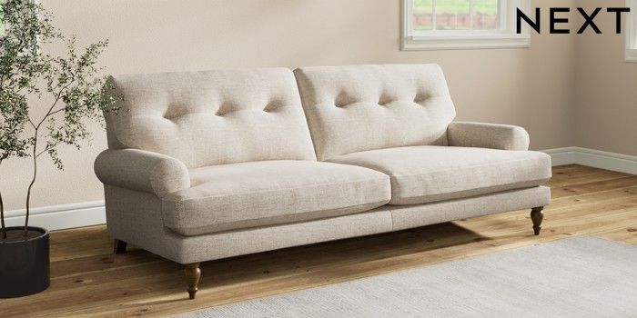 7.2.10 Erin Buttoned Back Deep Relaxed Sit 3 Seater Sofa Chunky Weave Mid Natural High Classic Turned - Mid | Made Click here to use our website with more accessibility support, for example screen readers