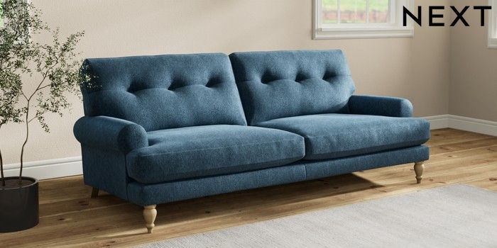 7.2.10 Erin Buttoned Back Deep Relaxed Sit 3 Seater Sofa Cotswold Chenille Dark Blue High Classic Turned - Light | Made Click here to use our website with more accessibility support, for example screen readers