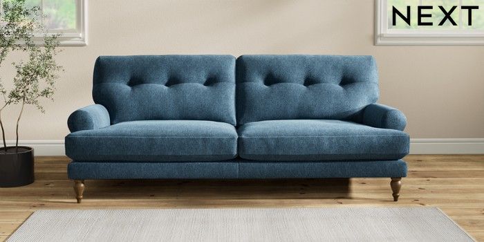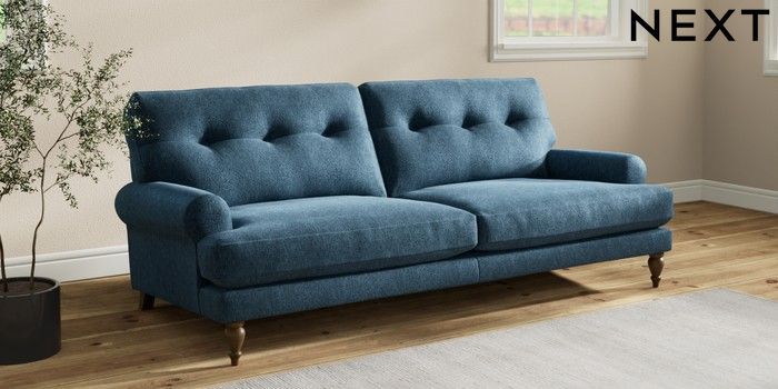 7.2.10 Erin Buttoned Back Deep Relaxed Sit 3 Seater Sofa Cotswold Chenille Dark Blue High Classic Turned - Mid | Made Click here to use our website with more accessibility support, for example screen readers