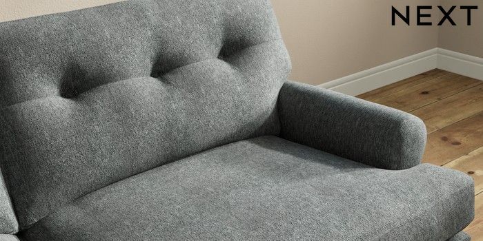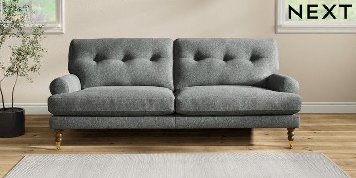 7.2.10 Erin Buttoned Back Deep Relaxed Sit 3 Seater Sofa Cotswold Chenille Dark Grey High Classic Turned Brass Castor - Mid | Made Click here to use our website with more accessibility support, for example screen readers