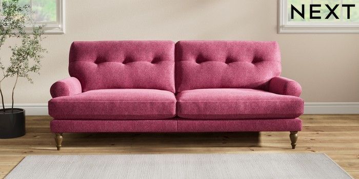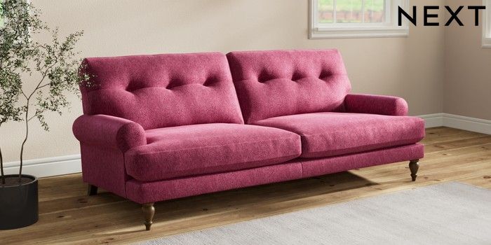 7.2.10 Erin Buttoned Back Deep Relaxed Sit 3 Seater Sofa Cotswold Chenille Dark Raspberry Pink High Classic Turned - Mid | Made Click here to use our website with more accessibility support, for example screen readers