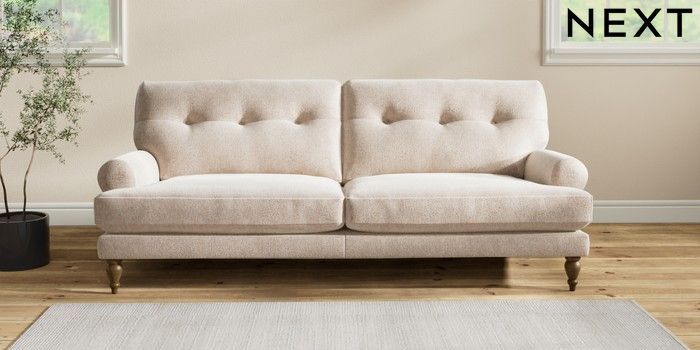 7.2.10 Erin Buttoned Back Deep Relaxed Sit 3 Seater Sofa Cotswold Chenille Light Natural High Classic Turned - Mid | Made Click here to use our website with more accessibility support, for example screen readers