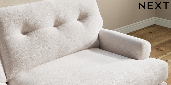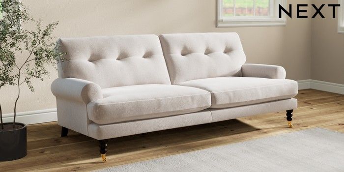 7.2.10 Erin Buttoned Back Deep Relaxed Sit 3 Seater Sofa Cotswold Chenille Oyster High Classic Turned Brass Castor - Dark | Made Click here to use our website with more accessibility support, for example screen readers