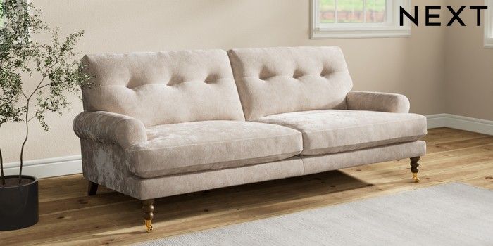 7.2.10 Erin Buttoned Back Deep Relaxed Sit 3 Seater Sofa Distressed Velour Mid Natural High Classic Turned Brass Castor - Mid | Made Click here to use our website with more accessibility support, for example screen readers