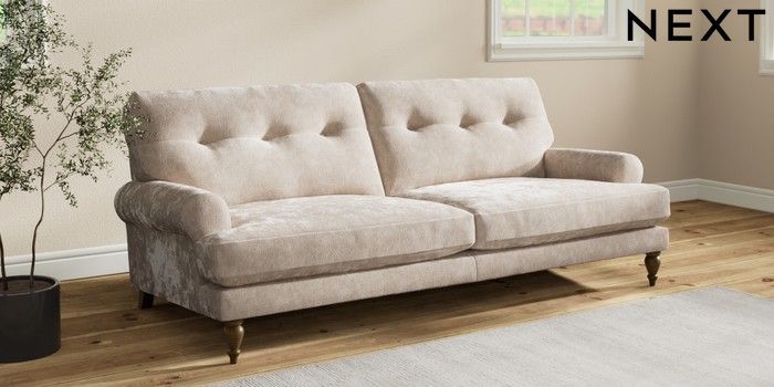7.2.10 Erin Buttoned Back Deep Relaxed Sit 3 Seater Sofa Distressed Velour Mid Natural High Classic Turned - Mid | Made Click here to use our website with more accessibility support, for example screen readers