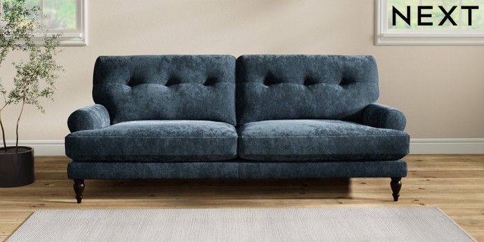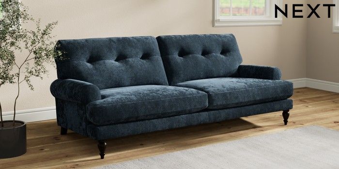 7.2.10 Erin Buttoned Back Deep Relaxed Sit 3 Seater Sofa Distressed Velour Midnight Blue High Classic Turned - Dark | Made Click here to use our website with more accessibility support, for example screen readers