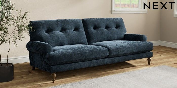 7.2.10 Erin Buttoned Back Deep Relaxed Sit 3 Seater Sofa Distressed Velour Midnight Blue High Classic Turned - Mid | Made Click here to use our website with more accessibility support, for example screen readers