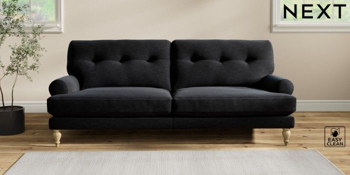 7.2.10 Erin Buttoned Back Deep Relaxed Sit 3 Seater Sofa Fine Chenille Easy Clean Black High Classic Turned - Light | Made Click here to use our website with more accessibility support, for example screen readers