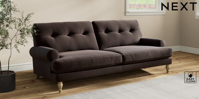 7.2.10 Erin Buttoned Back Deep Relaxed Sit 3 Seater Sofa Fine Chenille Easy Clean Chocolate Brown High Classic Turned - Light | Made Click here to use our website with more accessibility support, for example screen readers