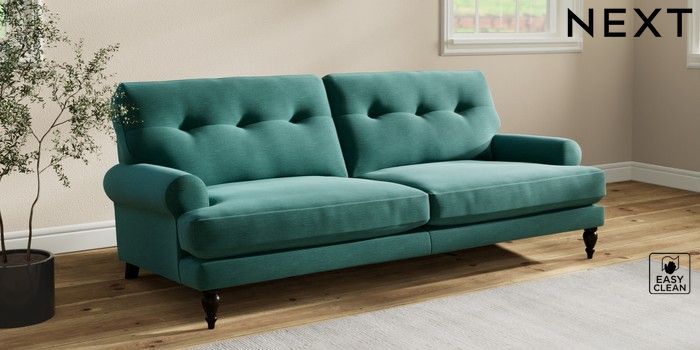 7.2.10 Erin Buttoned Back Deep Relaxed Sit 3 Seater Sofa Fine Chenille Easy Clean Dark Juniper Green High Classic Turned - Dark | Made Click here to use our website with more accessibility support, for example screen readers