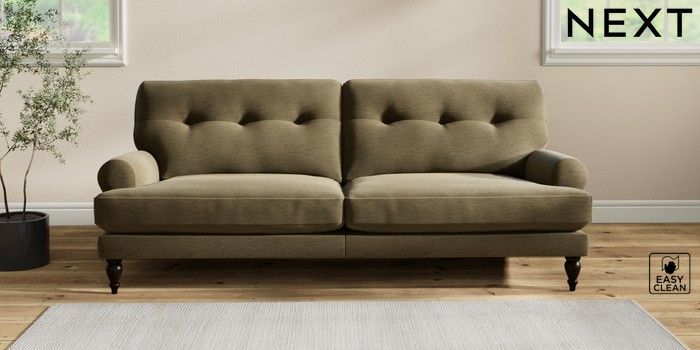 7.2.10 Erin Buttoned Back Deep Relaxed Sit 3 Seater Sofa Fine Chenille Easy Clean Dark Moss Green High Classic Turned - Dark | Made Click here to use our website with more accessibility support, for example screen readers