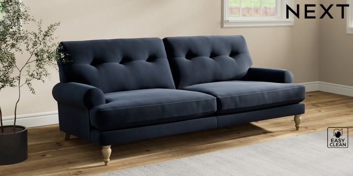 7.2.10 Erin Buttoned Back Deep Relaxed Sit 3 Seater Sofa Fine Chenille Easy Clean Dark Navy Blue High Classic Turned - Light | Made Click here to use our website with more accessibility support, for example screen readers