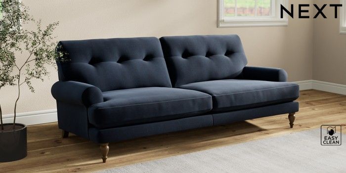 7.2.10 Erin Buttoned Back Deep Relaxed Sit 3 Seater Sofa Fine Chenille Easy Clean Dark Navy Blue High Classic Turned - Mid | Made Click here to use our website with more accessibility support, for example screen readers