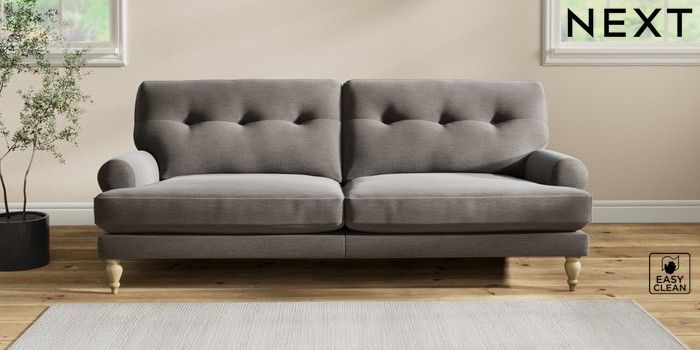 7.2.10 Erin Buttoned Back Deep Relaxed Sit 3 Seater Sofa Fine Chenille Easy Clean Dark Smoke Grey High Classic Turned - Light | Made Click here to use our website with more accessibility support, for example screen readers