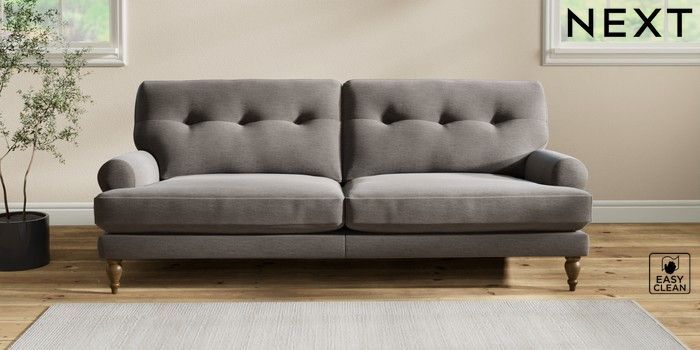 7.2.10 Erin Buttoned Back Deep Relaxed Sit 3 Seater Sofa Fine Chenille Easy Clean Dark Smoke Grey High Classic Turned - Mid | Made Click here to use our website with more accessibility support, for example screen readers