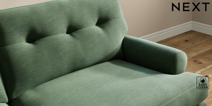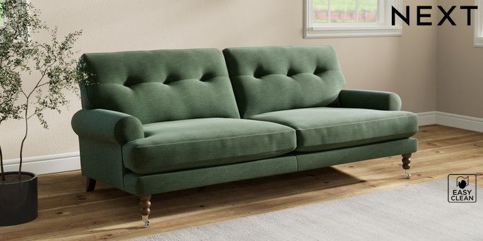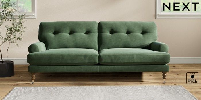 7.2.10 Erin Buttoned Back Deep Relaxed Sit 3 Seater Sofa Fine Chenille Easy Clean Mid Khaki Green High Classic Turned Chrome Castor - Mid | Made Click here to use our website with more accessibility support, for example screen readers