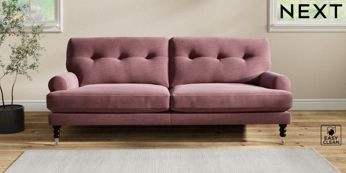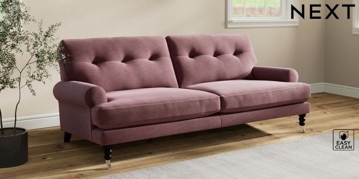 7.2.10 Erin Buttoned Back Deep Relaxed Sit 3 Seater Sofa Fine Chenille Easy Clean Mid Mulberry Purple High Classic Turned Chrome Castor - Dark | Made Click here to use our website with more accessibility support, for example screen readers