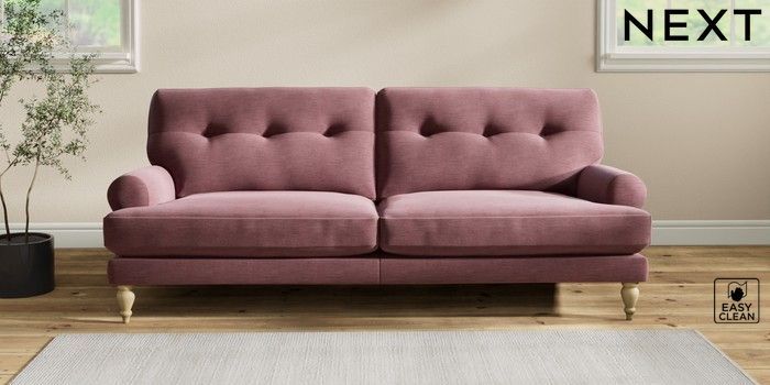 7.2.10 Erin Buttoned Back Deep Relaxed Sit 3 Seater Sofa Fine Chenille Easy Clean Mid Mulberry Purple High Classic Turned - Light | Made Click here to use our website with more accessibility support, for example screen readers