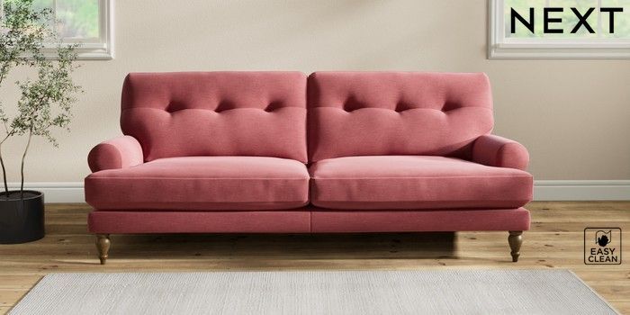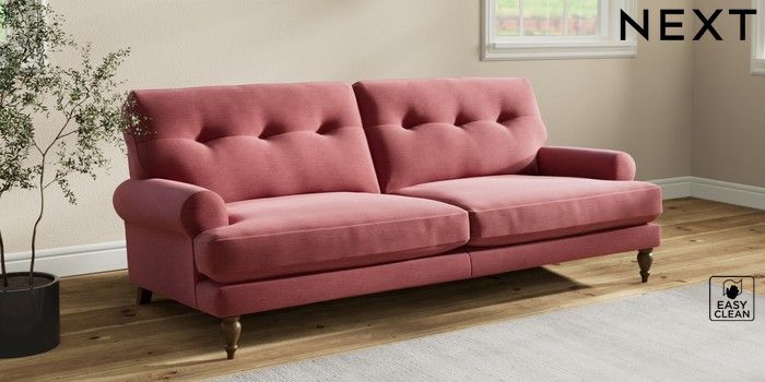 7.2.10 Erin Buttoned Back Deep Relaxed Sit 3 Seater Sofa Fine Chenille Easy Clean Mid Pink High Classic Turned - Mid | Made Click here to use our website with more accessibility support, for example screen readers