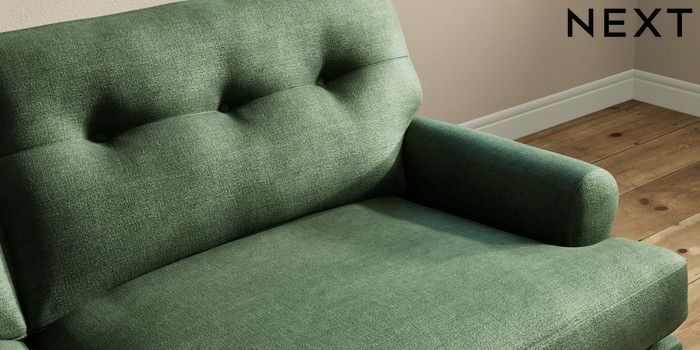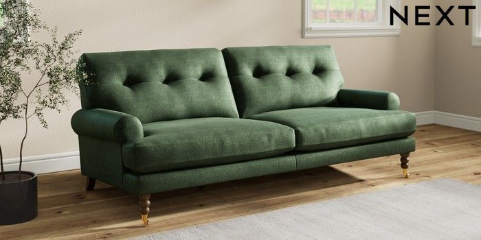 7.2.10 Erin Buttoned Back Deep Relaxed Sit 3 Seater Sofa Luxe Chenille Dark Green High Classic Turned Brass Castor - Mid | Made Click here to use our website with more accessibility support, for example screen readers
