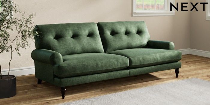 7.2.10 Erin Buttoned Back Deep Relaxed Sit 3 Seater Sofa Luxe Chenille Dark Green High Classic Turned - Dark | Made Click here to use our website with more accessibility support, for example screen readers