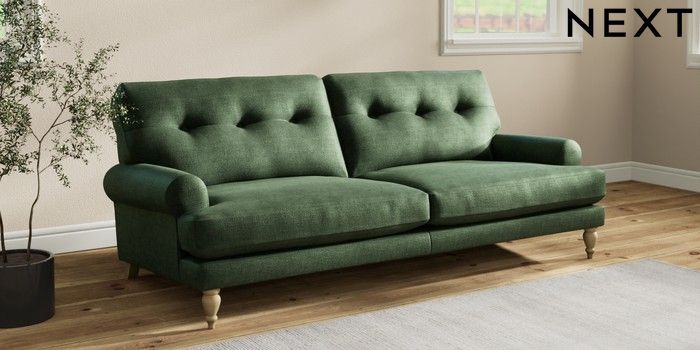 7.2.10 Erin Buttoned Back Deep Relaxed Sit 3 Seater Sofa Luxe Chenille Dark Green High Classic Turned - Light | Made Click here to use our website with more accessibility support, for example screen readers