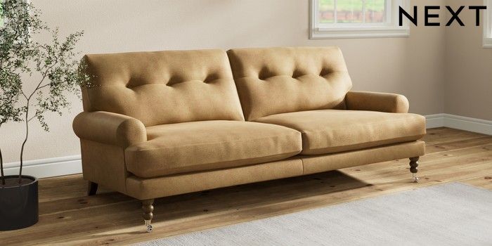 7.2.10 Erin Buttoned Back Deep Relaxed Sit 3 Seater Sofa Luxe Chenille Honey Yellow High Classic Turned Chrome Castor - Mid | Made Click here to use our website with more accessibility support, for example screen readers