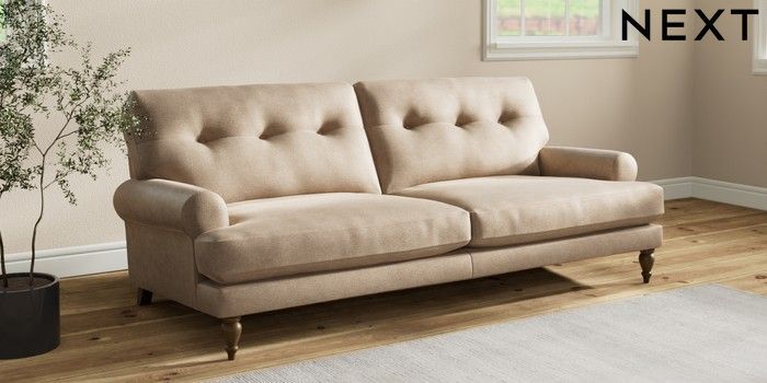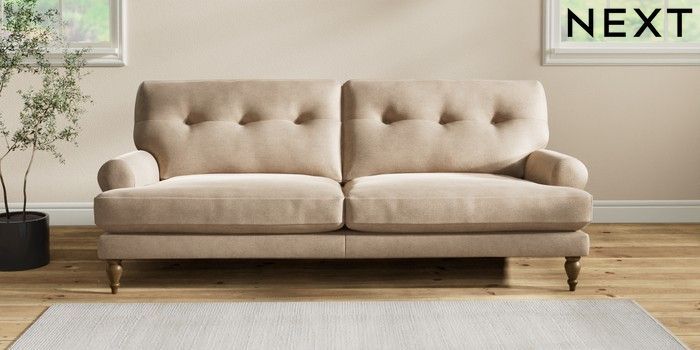 7.2.10 Erin Buttoned Back Deep Relaxed Sit 3 Seater Sofa Luxe Chenille Mid Camel Beige High Classic Turned - Mid | Made Click here to use our website with more accessibility support, for example screen readers