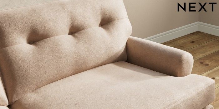 7.2.10 Erin Buttoned Back Deep Relaxed Sit 3 Seater Sofa Luxe Chenille Mid Natural High Classic Turned Brass Castor - Dark | Made Click here to use our website with more accessibility support, for example screen readers