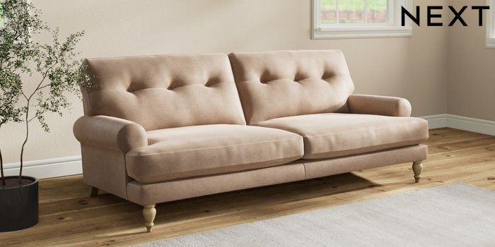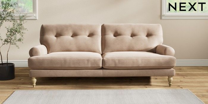 7.2.10 Erin Buttoned Back Deep Relaxed Sit 3 Seater Sofa Luxe Chenille Mid Natural High Classic Turned - Light | Made Click here to use our website with more accessibility support, for example screen readers