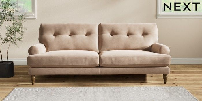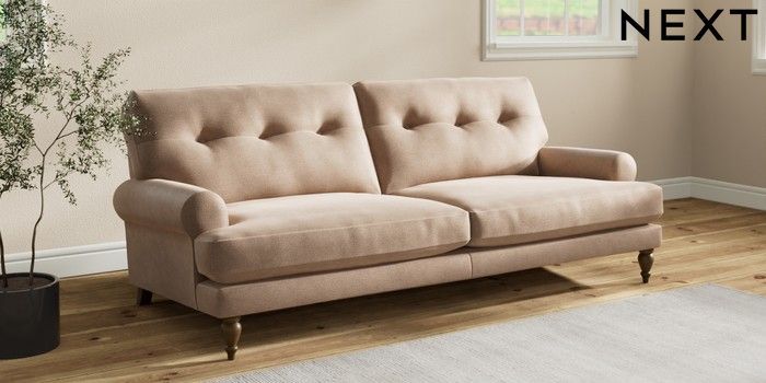 7.2.10 Erin Buttoned Back Deep Relaxed Sit 3 Seater Sofa Luxe Chenille Mid Natural High Classic Turned - Mid | Made Click here to use our website with more accessibility support, for example screen readers