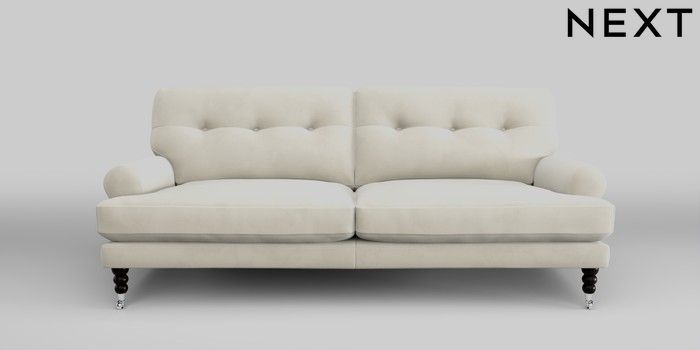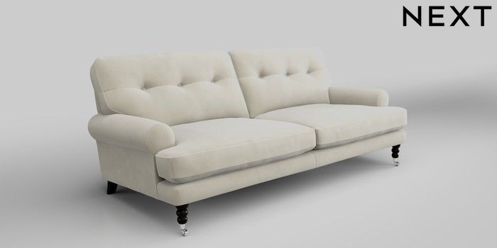 7.2.10 Erin Buttoned Back Deep Relaxed Sit 3 Seater Sofa Luxe Chenille Oyster High Classic Turned Chrome Castor - Dark | Made Click here to use our website with more accessibility support, for example screen readers