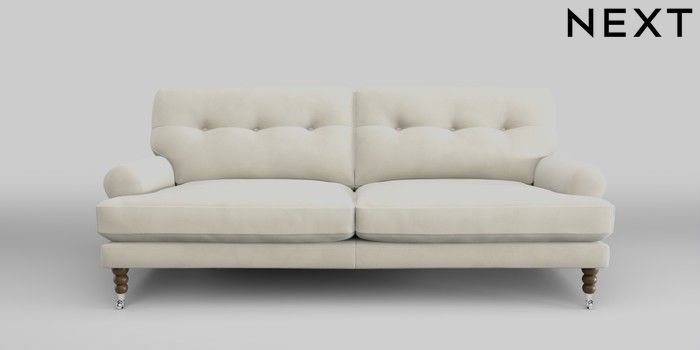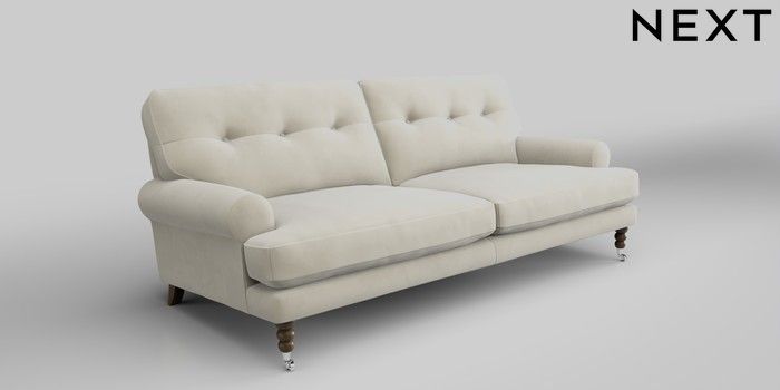7.2.10 Erin Buttoned Back Deep Relaxed Sit 3 Seater Sofa Luxe Chenille Oyster High Classic Turned Chrome Castor - Mid | Made Click here to use our website with more accessibility support, for example screen readers