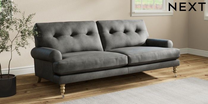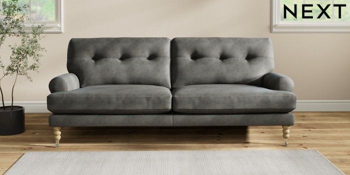 Add charm to your living space with the Erin Button Back Sofa. Its elegant scroll arms and classic button-back cushions create a timeless look. You'll love its "Relaxed Sit" cushions, specially designed for ultimate comfort. These cushions are made with clever foam and fibre, giving you a wonderfully soft, plump feel. To keep them looking their best, simply plump and turn them regularly. Plus, you can make the Erin your own by choosing from a huge range of coloured fabrics.