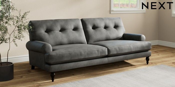 Add charm to your living space with the Erin Button Back Sofa. Its elegant scroll arms and classic button-back cushions create a timeless look. You'll love its "Relaxed Sit" cushions, specially designed for ultimate comfort. These cushions are made with clever foam and fibre, giving you a wonderfully soft, plump feel. To keep them looking their best, simply plump and turn them regularly. Plus, you can make the Erin your own by choosing from a huge range of coloured fabrics.