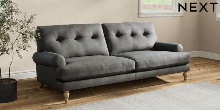 7.2.10 Erin Buttoned Back Deep Relaxed Sit 3 Seater Sofa Monza Faux Leather Easy Clean Dark Grey High Classic Turned - Light | Made Click here to use our website with more accessibility support, for example screen readers