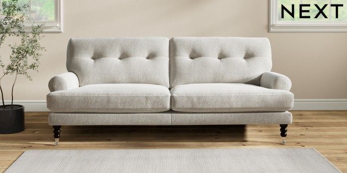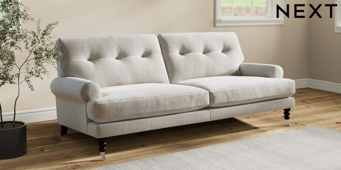 7.2.10 Erin Buttoned Back Deep Relaxed Sit 3 Seater Sofa Multi Weave Light Blue High Classic Turned Chrome Castor - Dark | Made Click here to use our website with more accessibility support, for example screen readers