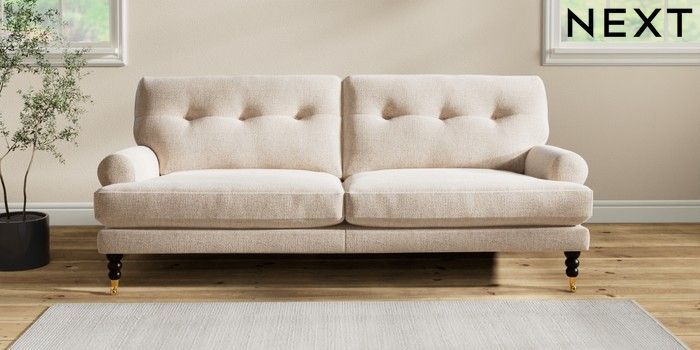 Add charm to your living space with the Erin Button Back Sofa. Its elegant scroll arms and classic button-back cushions create a timeless look. You'll love its "Relaxed Sit" cushions, specially designed for ultimate comfort. These cushions are made with clever foam and fibre, giving you a wonderfully soft, plump feel. To keep them looking their best, simply plump and turn them regularly. Plus, you can make the Erin your own by choosing from a huge range of coloured fabrics.