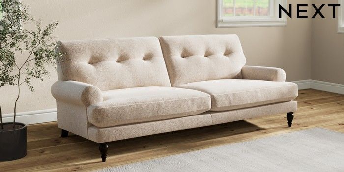 7.2.10 Erin Buttoned Back Deep Relaxed Sit 3 Seater Sofa Multi Weave Mid Natural High Classic Turned - Dark | Made Click here to use our website with more accessibility support, for example screen readers