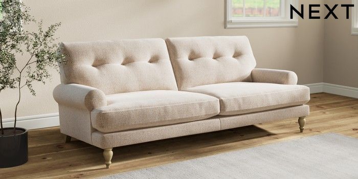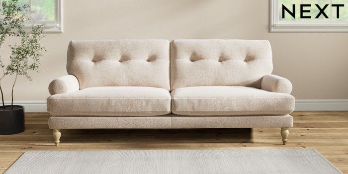 7.2.10 Erin Buttoned Back Deep Relaxed Sit 3 Seater Sofa Multi Weave Mid Natural High Classic Turned - Light | Made Click here to use our website with more accessibility support, for example screen readers