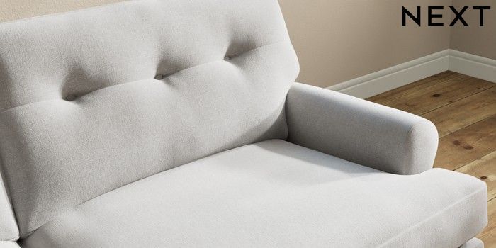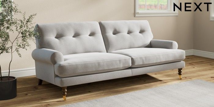 7.2.10 Erin Buttoned Back Deep Relaxed Sit 3 Seater Sofa Natural Mix Light Grey High Classic Turned Brass Castor - Mid | Made Click here to use our website with more accessibility support, for example screen readers