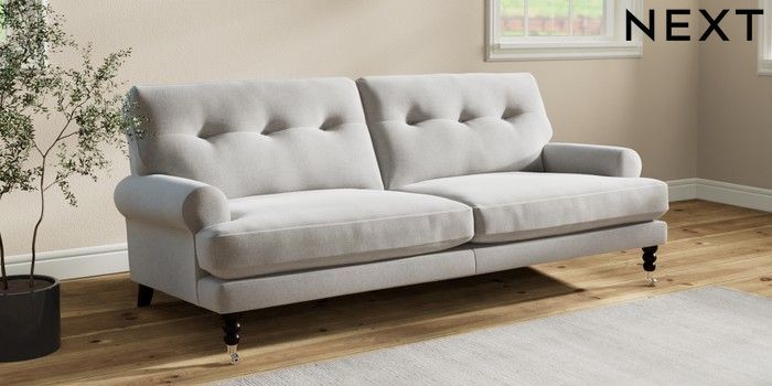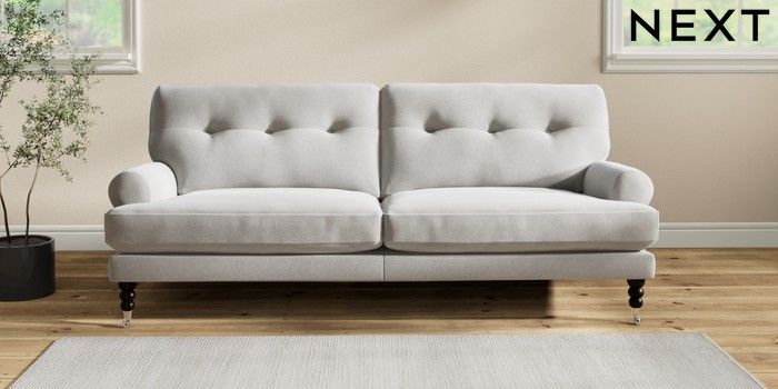 7.2.10 Erin Buttoned Back Deep Relaxed Sit 3 Seater Sofa Natural Mix Light Grey High Classic Turned Chrome Castor - Dark | Made Click here to use our website with more accessibility support, for example screen readers
